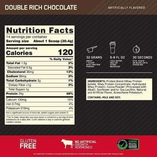 Optimum Nutrition (ON) Gold Standard 100% Whey Protein Powder | Double Rich Chocolate – (1lb) Pound | Best Price in Bangladesh (bd)