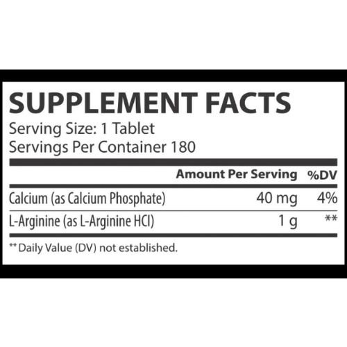 INGREDIENTS: Calcium (Calcium Phosphate), L-Arginine (L-Arginine HCI).