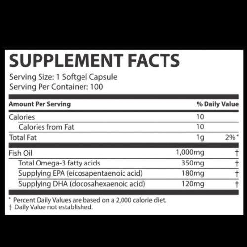 Muscle Rulz OMEGA-3 Fish Oil Supplement, take 1 soft gel daily with food. Supportive but not conclusive research shows that consumption of EPA and DHA omega-3 fatty acids may reduce the risk of coronary heart disease. This natural fish oil concentrate is manufactured under strict quality control standards. It is tested to be free of potentially harmful levels of contaminants such as PCBs, dioxins, mercury, and other heavy metals.