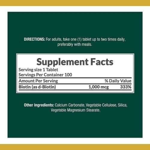 Biotin (as d-Biotin) | 1,000 mcg | 333% |