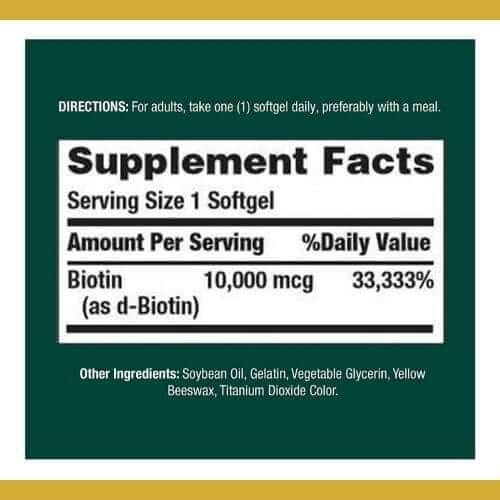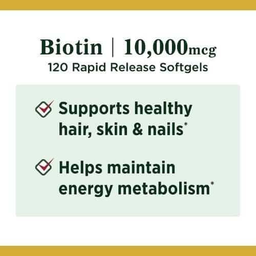 - Promotes Healthy Hair Growth: Nature’s Bounty Biotin contains 10,000 mcg of biotin per softgel, supporting the growth and strength of hair follicles. Regular intake can help reduce hair breakage and improve hair thickness for a luscious mane.