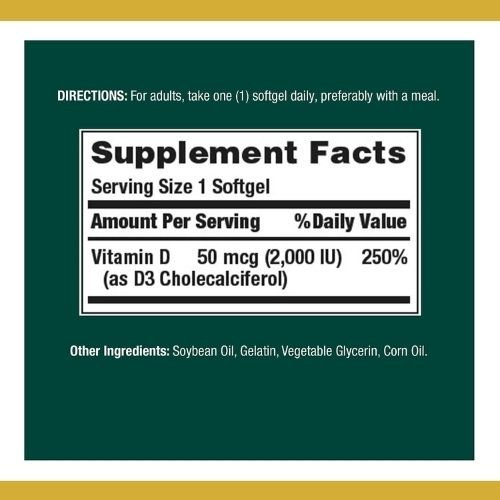 - Supports Strong Bones and Teeth: Nature’s Bounty Vitamin D3 2000 iu helps in the absorption of calcium and phosphorus, promoting healthy bone and teeth development.