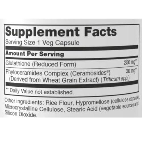 NOW Foods Solutions, Glutathione Skin Brightener with Ceramosides®, Moisturizing and Illuminating, 30 Veg Capsules