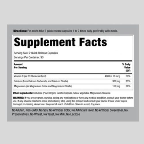• Convenient Daily Support: With 180 quick-release capsules per bottle, Piping Rock Calcium & Magnesium Citrate Plus D3 provides a convenient supply for daily use. Simply take the recommended serving size each day to help maintain strong bones and overall wellness.
