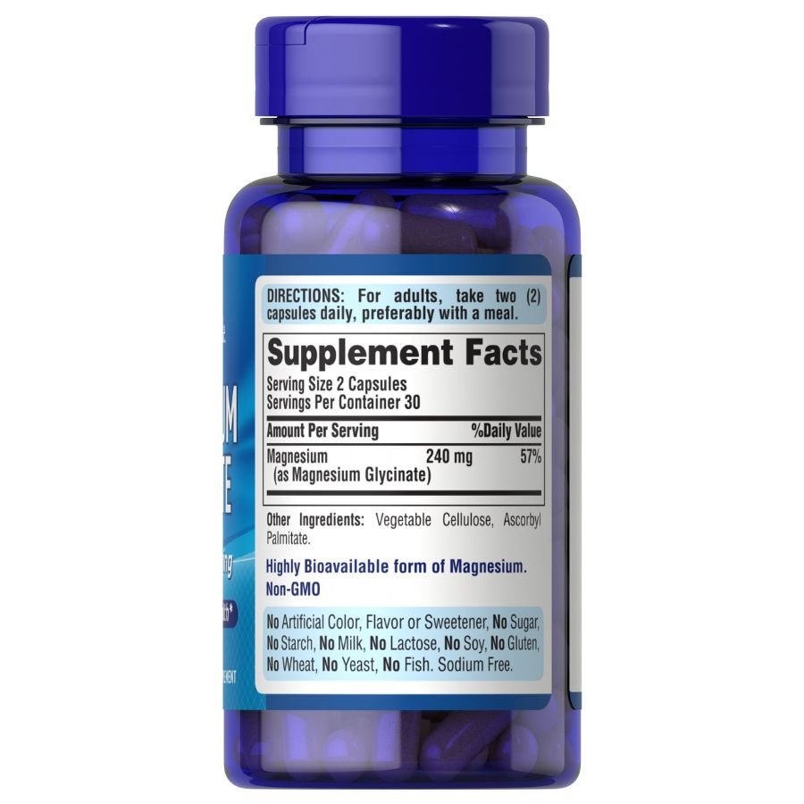 - Puritan’s Pride is a well-known company. They make many health supplements. Their Magnesium Glycinate 240 Mg gives 240 mg of magnesium in each serving. This is a good amount for many people.