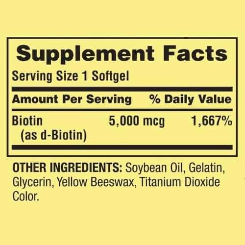 Biotin (as d-Biotin) | 5,000 mcg | 3,333% |