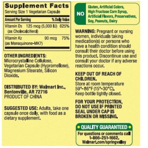 - Convenient Daily Supplement: Spring Valley Vitamin K2 and D3 Capsules 90 easy-to-swallow capsules per bottle, Spring Valley’s Vitamin K2 and D3 blend offers a convenient way to incorporate these essential vitamins into your daily routine, supporting your overall health with just one simple supplement.