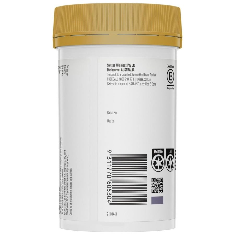 - Grape Vine (Vitis vinifera extract 4.17 mg) equiv. dry seed (standardised to contain procyanidins 3.36 mg) 500 mg (min.)