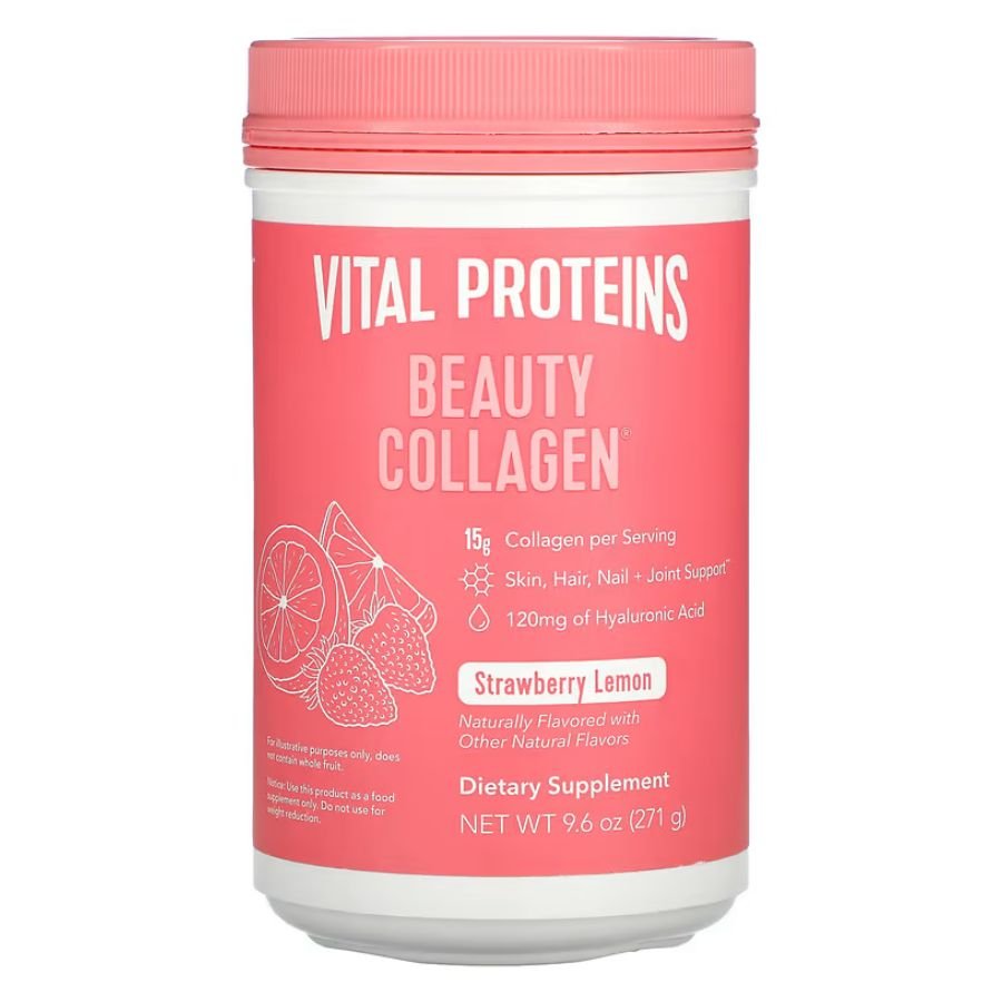 - Vital Proteins is a well-known company that makes collagen products. Their Beauty Collagen Strawberry Lemon is a powder you mix with water or juice. It tastes like strawberry and lemon, which many people enjoy. The powder is easy to use and fits into daily routines.