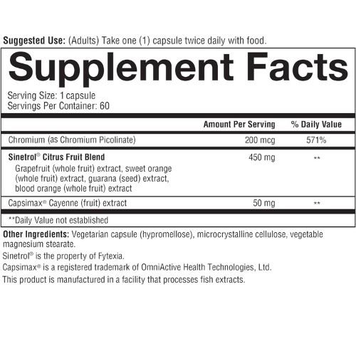 Special Ingredients | Capsimax Cayenne Extract, Chromium, Sinetrol Citrus Fruit Blend |