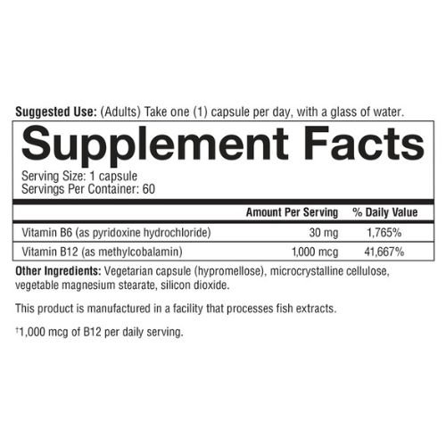 Youtheory B12B6 is a combination of essential nutrients that support the proper metabolism of DNA, proteins, carbohydrates, and fats – converting food into cellular energy. Sufficient intake of these two important vitamins helps to promote our body’s natural antioxidation and detoxification systems while supporting brain health and overall well-being.